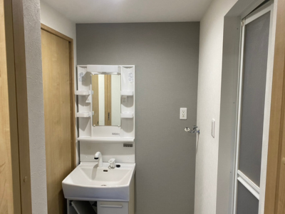洗面脱衣室 / 壁紙・床材張替工事で統一感のある仕上がりに。